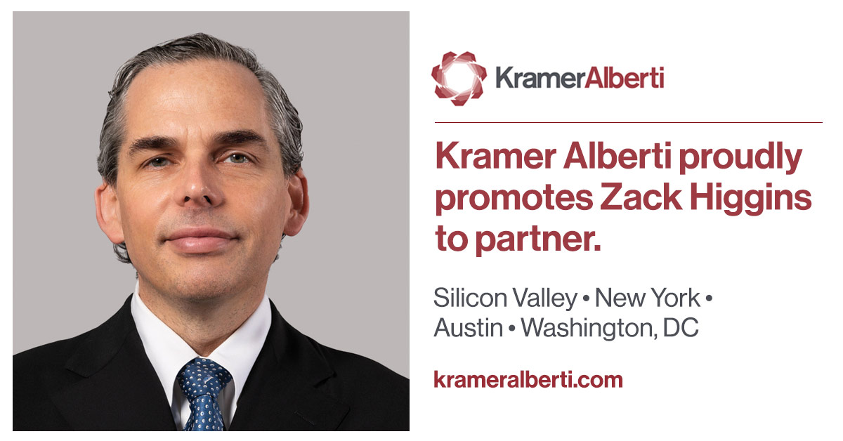 Kramer Alberti Lim & Tonkovich LLP today announced that Zack Higgins has become a partner in the firm.