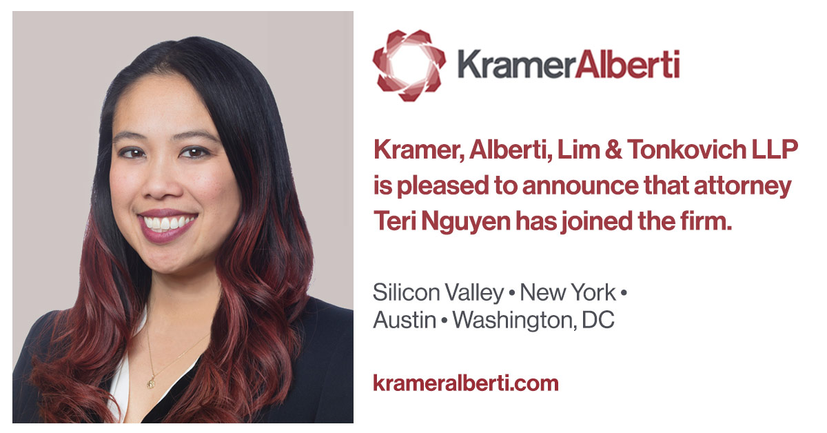 Kramer Alberti Lim & Tonkovich LLP, a nationally recognized patent litigation firm, is pleased to announce that attorney Teri H. P. Nguyen has joined the firm.